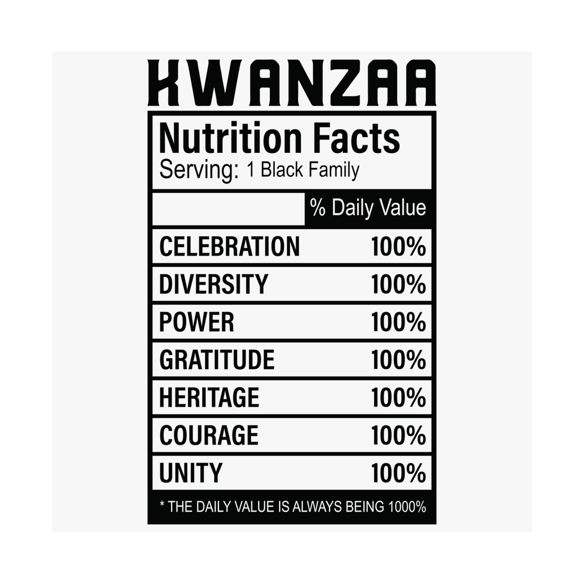 Kwanza Nutritional Facts | Vertical Poster |White|