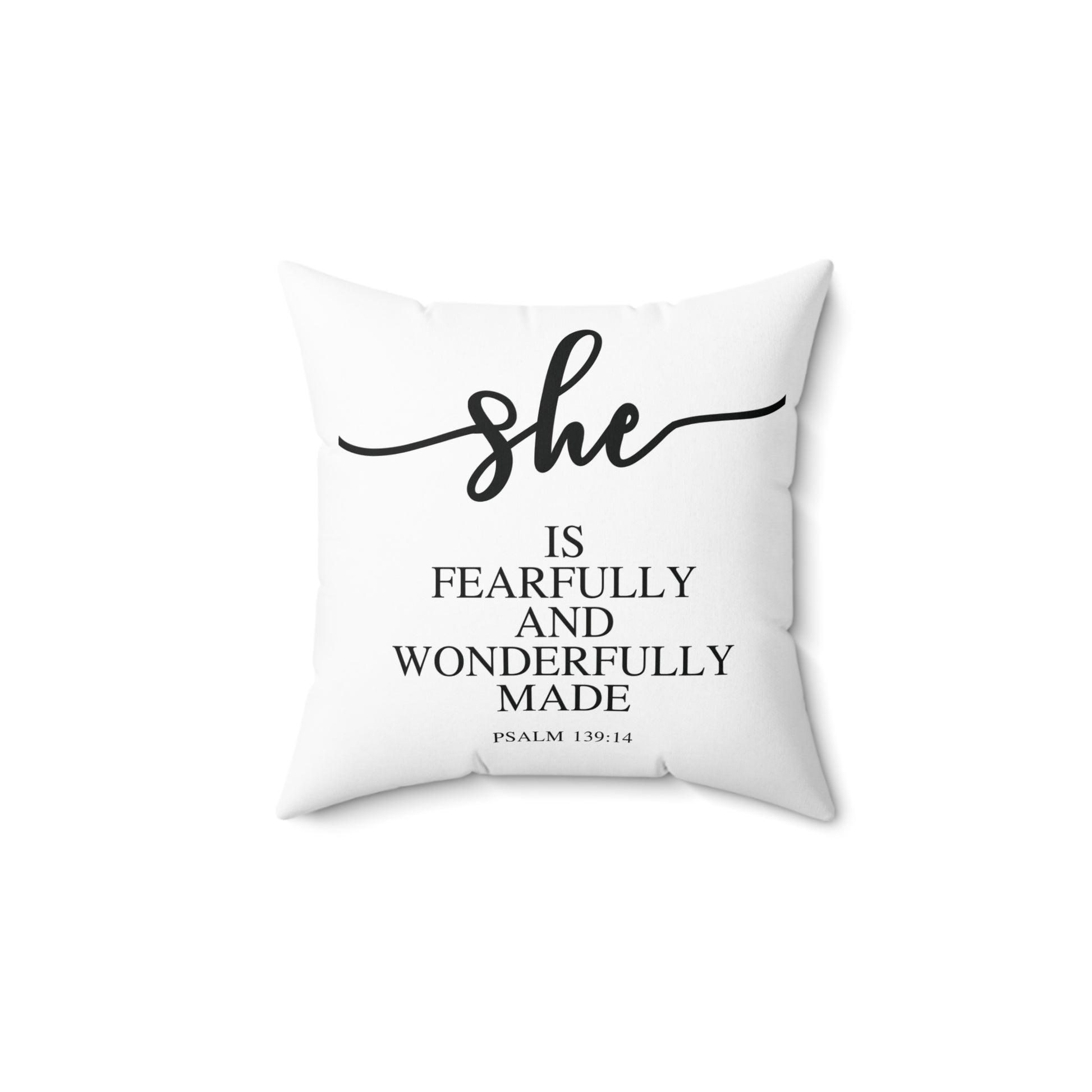 She Is (Version 2) | Square Pillow |Psalms 139.14|White|